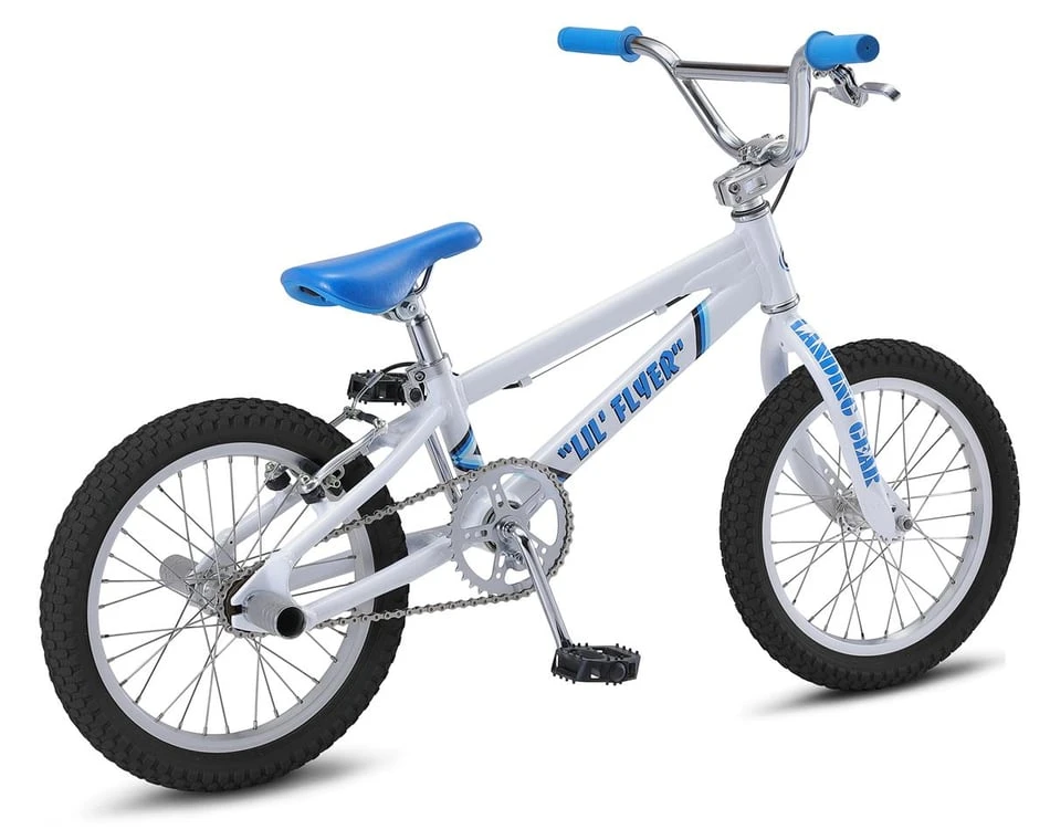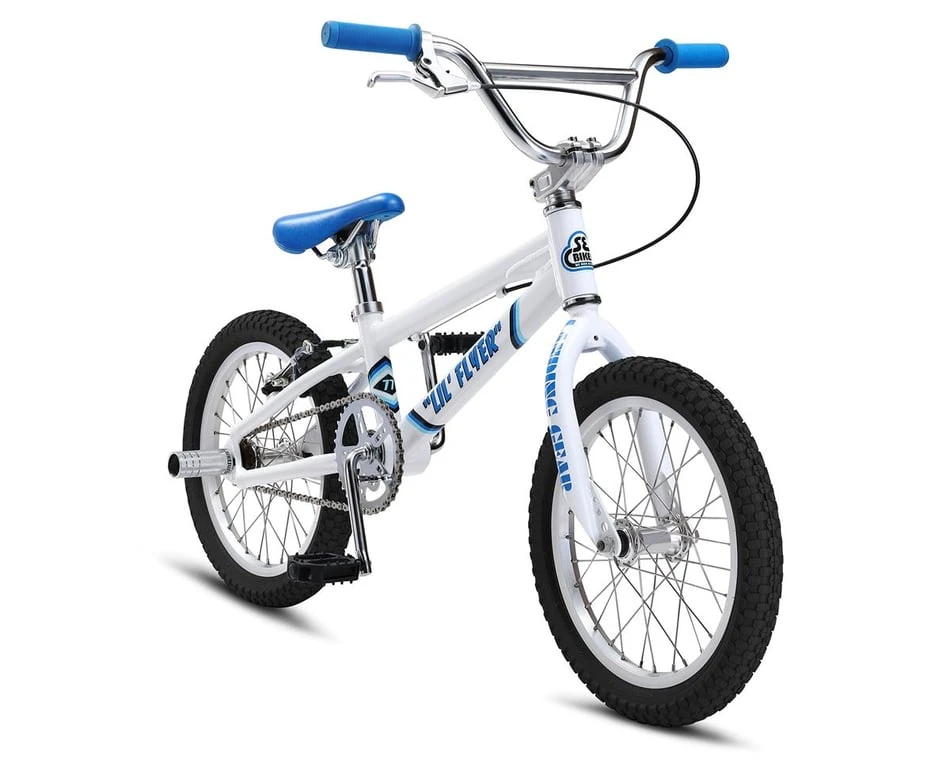 “Let’s get kids on bikes” is more than just a motto for SE Bikes. We want kids to fall in love with BMX early on and experience a life-long passion for the sport. And the new 16″ LiL’ Flyer is the perfect bike to spark their interest. This lightweight aluminum bike comes in two wildly fun colorways and features a padset and wheelie pegs. The kids are the future; let’s get them on bikes!
