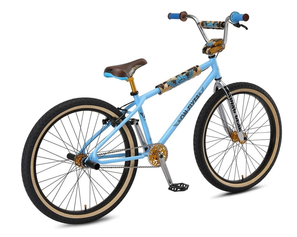 The 2022 SE Blocks Flyer 26″ Bike is a staple in BMX for nearly as long as the sport has been in existence, the 26” OM Flyer was originally designed by and named after SE’s founder, Scot “Old Man” Breithaupt. With its blue colorway mixed in with bits of brown and the camouflage pads, this bike captures the essence of BMX’s past four decades. It’s built to last with a retro-styled 4130 butted Chromoly frame featuring a classic looptail rear end. Long live the OM!