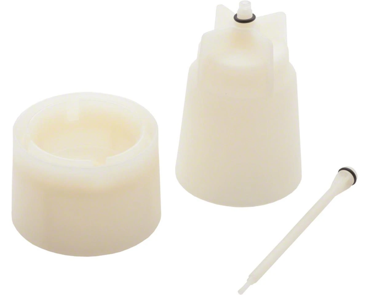 - Threads into hydraulic brake lever to catch fluid during bleeding of Shimano One-Way-Bleed brake calipers