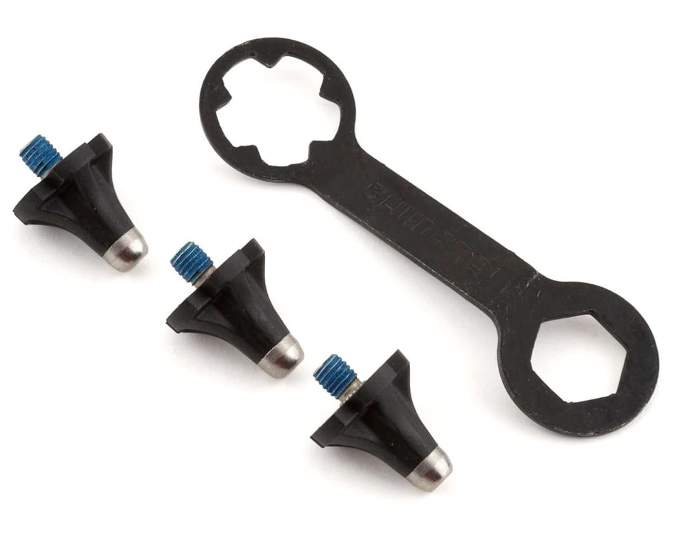 Install the Shimano SM-SHXC900 Toe Spikes for maximum traction when the conditions are loose or muddy. The installation tool is included. Sold as two pairs, one pair for each shoe.