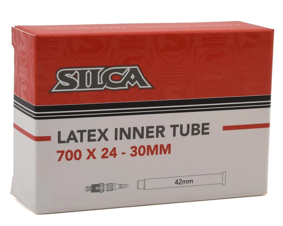 This is Silca’s Latex Tube. Latex tubes are known for their supple ride, low rolling resistance, and their puncture resistance; these Silca tubes are no different. The speed shield (included with valve extender models) not only improves aerodynamics, but it also stops the valve stem from rattling.