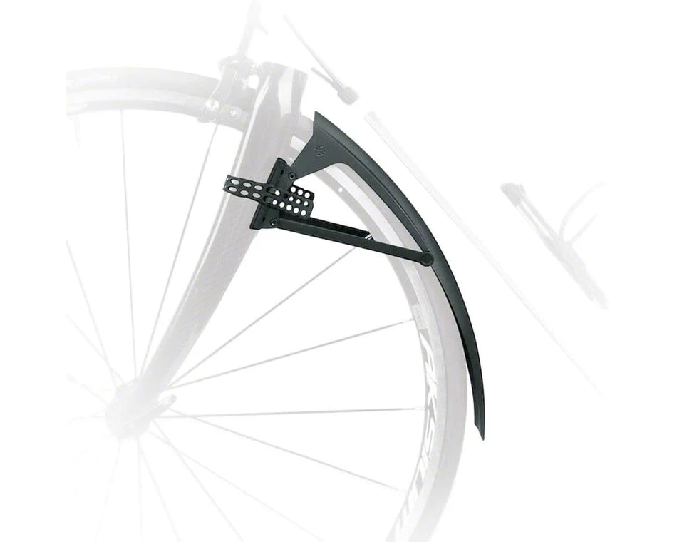 Clip-on front fender for road, cyclocross, hybrid and gravel bikes.