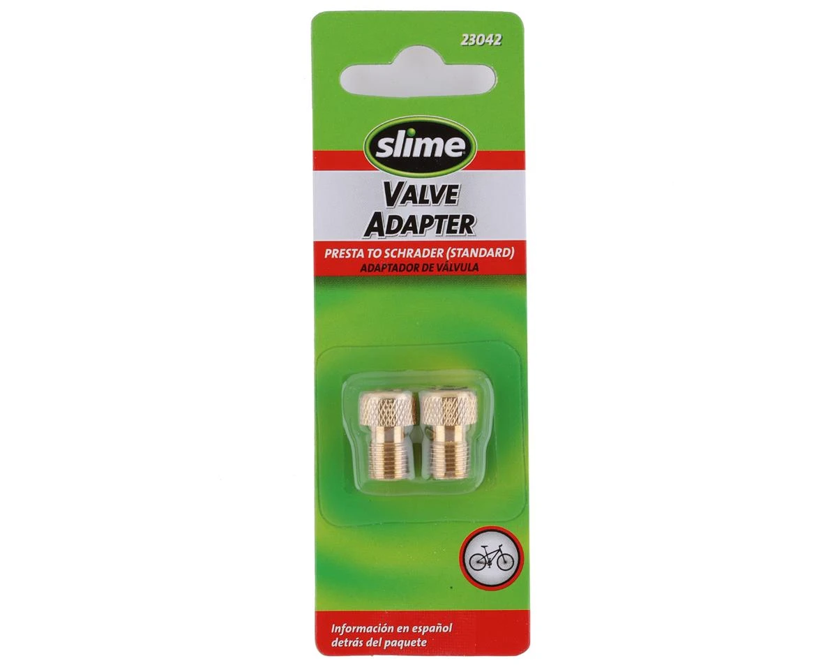 Slime Presta Valve Adapters allow you to inflate Presta valve tubes with a Schrader valve-compatible pump head. Great for filling up air at gas stations or any non-bike-specific pump. Sold in pairs.