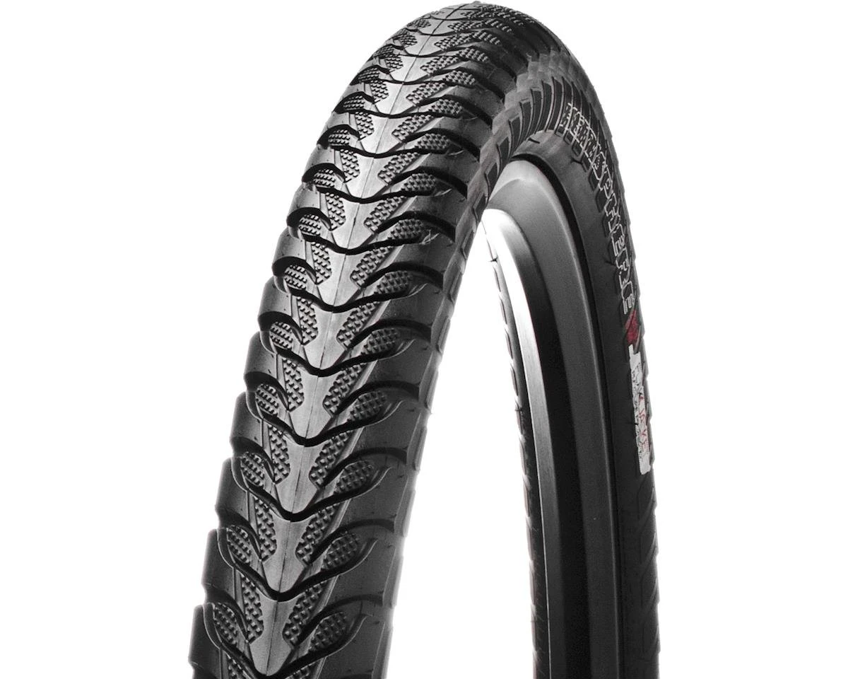 The Specialized Hemisphere Tire is a modern, versatile, and durable trekking or city tire with tough Flak Jacket puncture protection and a bold tread that deliver control on loose surfaces. This tire’s serial center blocks roll easily on paved surfaces, while also providing off-road traction off-road through wide-spaced shoulder blocks that bite into soft ground. Altogether, the Hemisphere will excel on streets and bike paths alike.