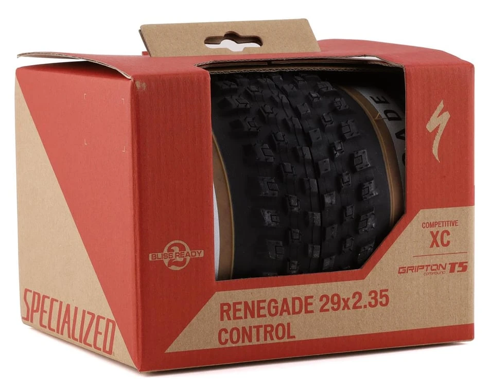The Renegade T5 tire is perfect for fast accelerations, climbing in hard-pack terrain and podium finishes. Specialized’s fastest-rolling cross-country tread receives an elevated shoulder height to confidently carry speed through turns while a taller inner block pierces the ground and claws for traction. The Control casing is a light and durable do it all XC construction and to top it off, Specialized used their fastest rolling, race ready T5 compound with excellent wear and tear protection.