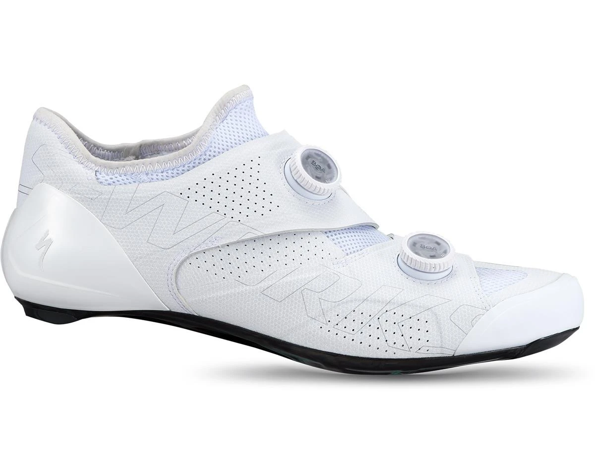 When the moment comes for an attack in the hills, a long solo move, or a full gas sprint for the line, every watt counts, which is why Specialized designed the S-Works Ares to be the most efficient and powerful performance shoe ever made. Specialized combined decades of Body Geometry development with obsessive innovation working with the world’s best athletes to completely reimagine the race shoe. An entirely new, patent-pending closure system, Dyneema®-reinforced toungless sock, and ultra-stiff FACT Powerline™ carbon outsole eliminate foot roll, reduce pressure on tendons, and transfer every ounce of power to the pedals for unprecedented performance and comfort. It’s 1% faster than any shoe we’ve ever made, and at the finish line, that’s all that matters.