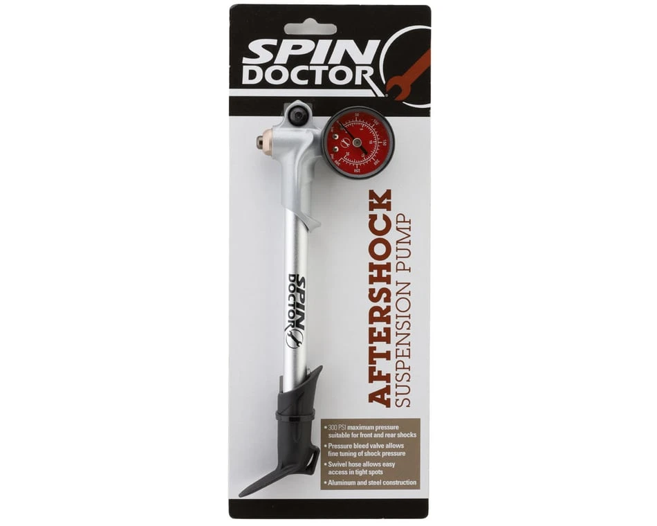 When the valve on your suspension fork doesn’t feel quite right, you need the expert quality and efficiency of the Spin Doctor Aftershock Suspension Pump. This high pressure pump inflates your front and rear shocks up to 300 PSI for optimal off-road performance. The swivel hose allows easy access in tight spots and a pressure bleed valve guards against accidental negative pressure.