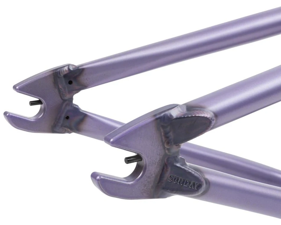 The Sunday Park Ranger is designed specifically for technical park, transition and street riding. This new frame design draws inspiration from the Street Sweeper and makes use of its tube set and short chain stays to help create a tech driven frame with a steep head tube angle, a tall bottom bracket, hollow dropouts with integrated chain tensioners and a significantly lower standover. The Park Ranger includes all of the necessary (and fully removable) braking and Gyro tab hardware that park and transition riders look for when building a new bike. The frame’s front triangle makes use of traditional round Nightshift-style top and down tubes with proven internal gusseting for added strength.