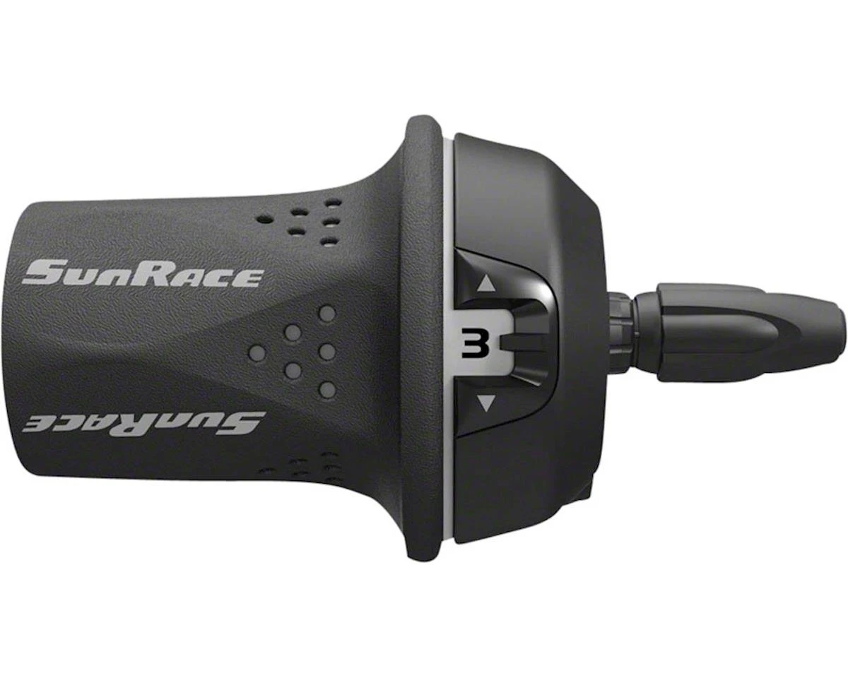 The Sunrace M21 twist shifter works with Sunrace derailleurs to provide accurate shifts. A gear indicator lets you know what gear you’re in.