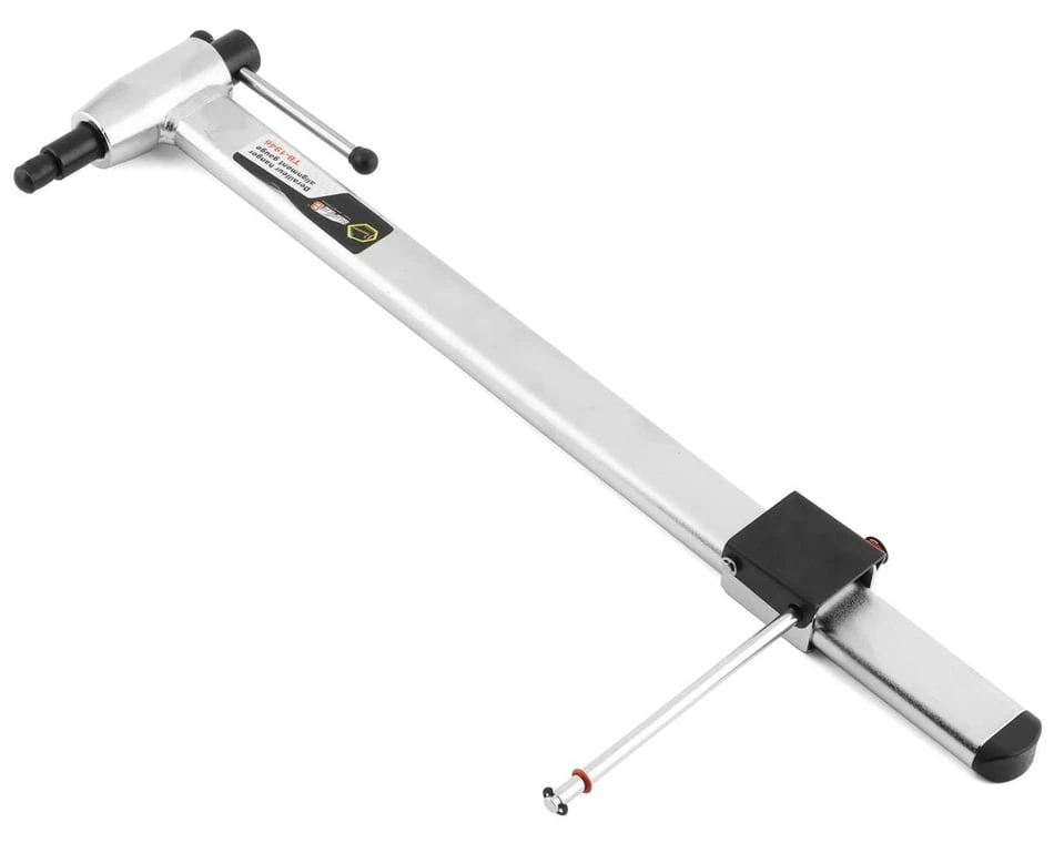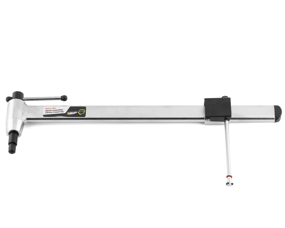 The Super B derailleur hanger alignment gauge is an indispensable tool that can be used to measure and re-align bent derailleur hangers that may be causing shifting issues.