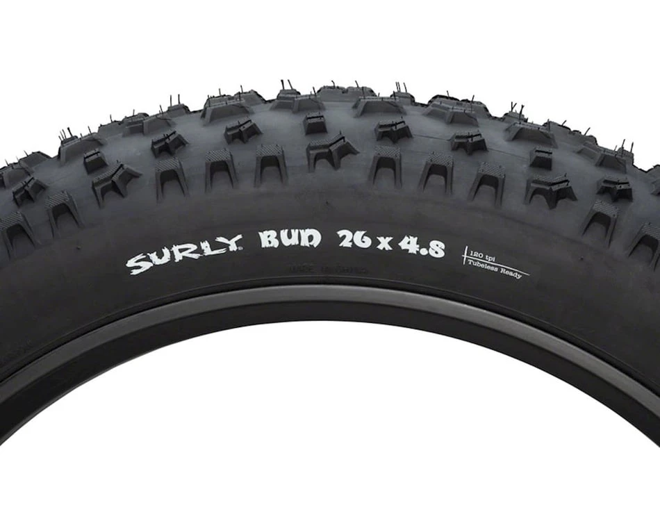 The Surly Bud Tubeless Fat Bike Tire is a front-specific tire designed to provide aggressive snow and mud-shedding performance. Works best when paired with his brother: the Lou tire.