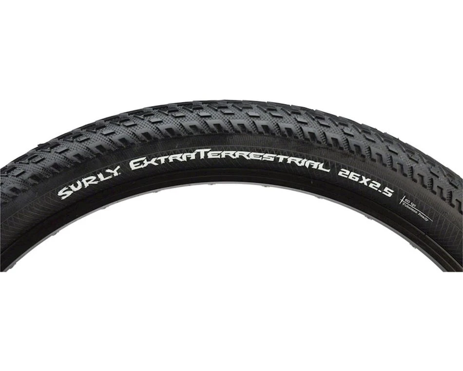 The Surly ExtraTerrestrial Tubeless Touring Tire is an ultra-durable tire designed to provide low rolling resistance and durability on various multi-road surfaces. The low-profile, directional tread pattern maintains traction when itβs needed.