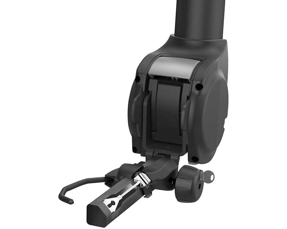 - Quick to install and easy to lock the rack to the vehicle due to the tool-free, SnugTite stinger (lock included)