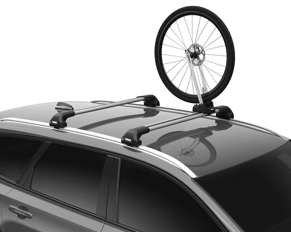 The days of using up all of your cargo space in the trunk of your car when transporting a bike is a thing of the past. The Thule front wheel holder is an easy to use roof mounted holder designed to keep muddy and bulky wheels out of the trunk.
