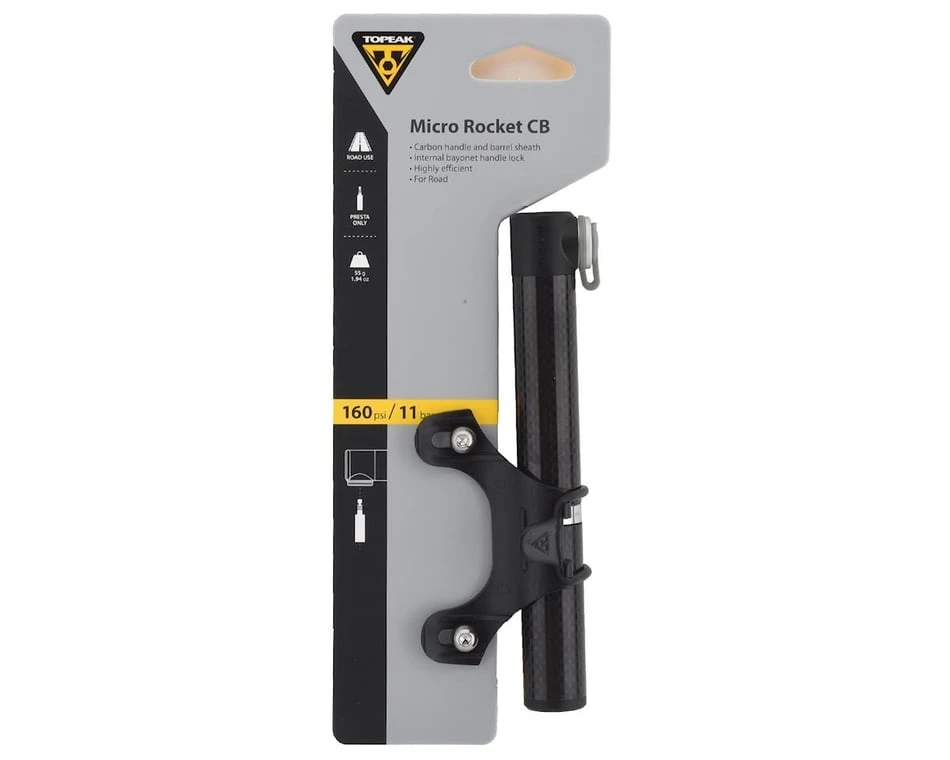 For road riders who monitor every gram that accompanies them, the Topeak Micro Rocket Carbon Mini Pump is the perfect choice for tire inflation. With a carbon handle and barrel sheath, this mini-pump tips the scales at a mere 55 grams. And with its ability to inflate to 160 psi and still easily fit in a jersey pocket, the Micro Rocket Carbon definitely punches well above its size and weight.