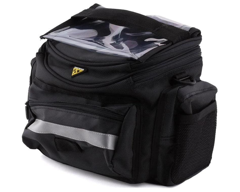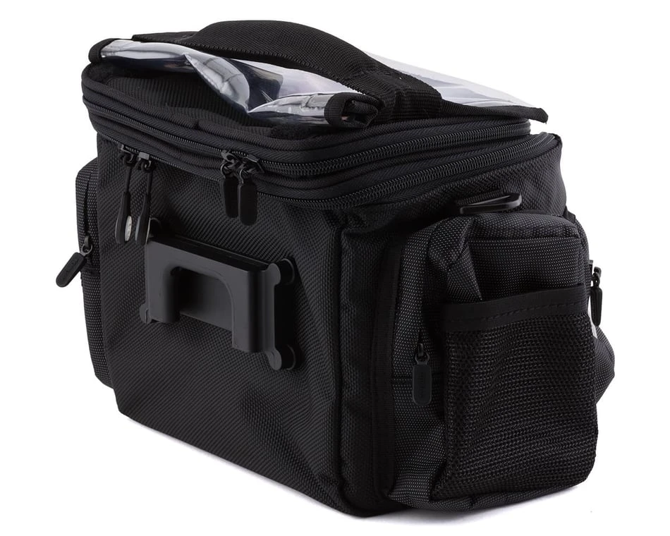 - A full featured medium capacity handlebar bag with a QuickClick mount and shoulder strap that makes it easy to take with you