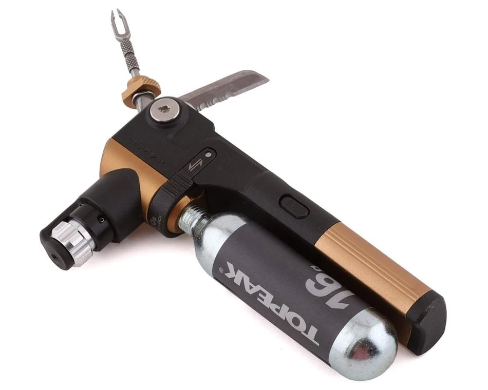 - Compact, all-in-one tubeless tire repair kit and inflator for quick repairs on road or trail