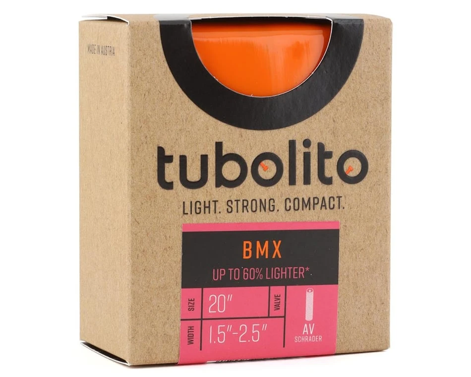 The Tubolito Tubo 20″ BMX Inner Tube is not only one of the lightest tubes available, but it’s also the strongest. Made from proprietary high-tech thermoplastic elastomer, the Tubo inner tube is about 50-60% lighter, yet 2 times stronger than a standard butyl inner tube. While the material is extremely light, the tube’s 4-ply construction aids in puncture and pinch resistance.