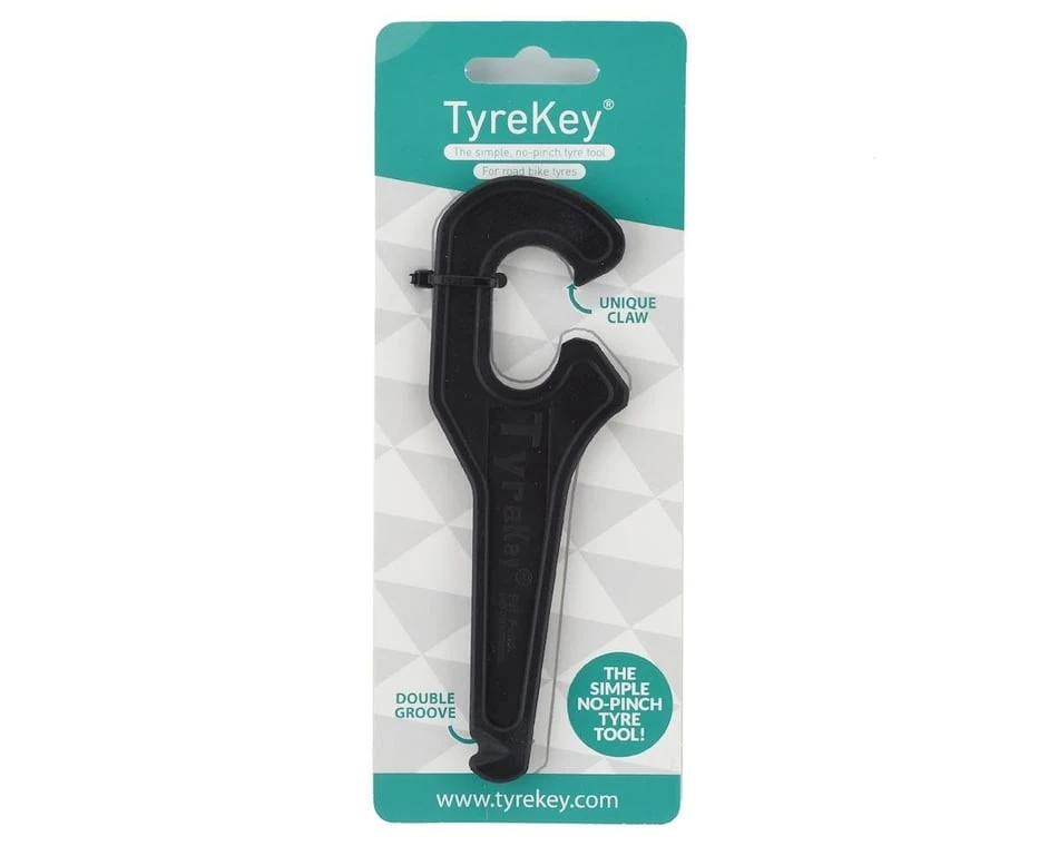 This is the TyreKey tire lever tool that helps you change your inner tube with ease and with a minimized risk of pinching the tube. The tool features a unique claw that reinstalls the tire without touching the inner tube to avoid the chance of a pinch-puncture.