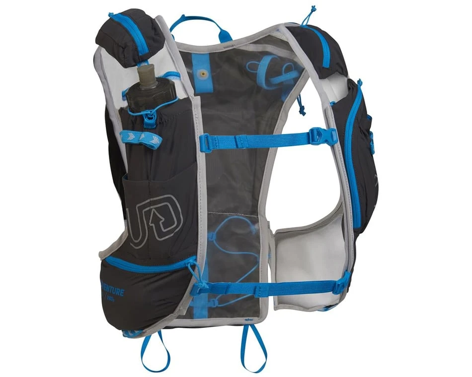 The Ultimate Direction Adventure Vest 5.0 offers the maximum capacity with dedicated pockets for essentials, such as GPS units, and a deployable rain shell that is ready for any kind of adventure.