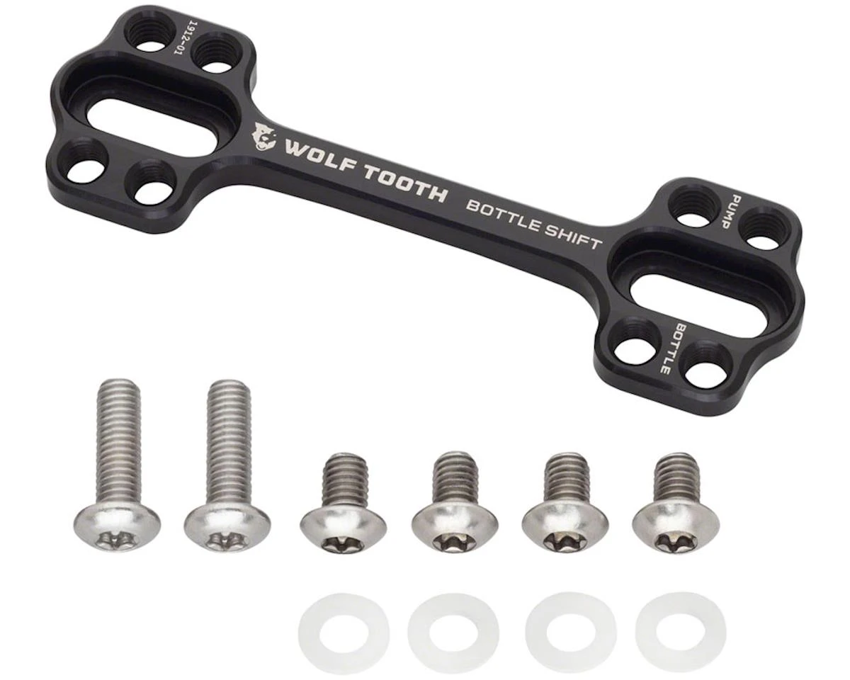 The Wolf Tooth Components B-RAD Bottle Shift is designed to offset a water bottle mount to a better position on frames with large downtubes. Great for full suspension frames and for mounting a pump alongside a water bottle.
