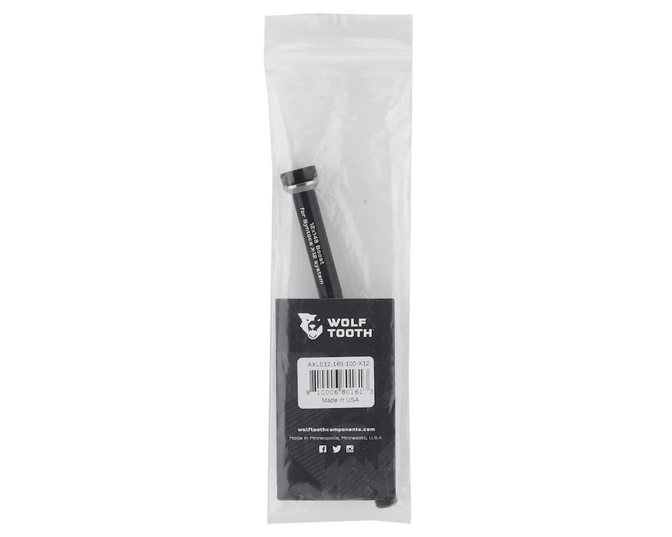 Wolf Tooth Components Rear Axles for X-12 use a captive conical steel washer under the head to reduce friction. This protects your expensive frame, transfers more of the tightening torque to clamping load for a stiffer interface, and prevents the axle from sticking or galling when you want to remove it. They are made from lightweight aluminum and are available in multiple axle sizes, thread lengths, and thread pitches. This version is made specifically for bicycles that use the Syntace X-12 System, which includes many models from Specialized, Cannondale, Intense, 3T, Canyon, and others. The main difference between this and other Wolf Tooth axles is that the X-12 axle uses a conical washer rather than a flat washer.