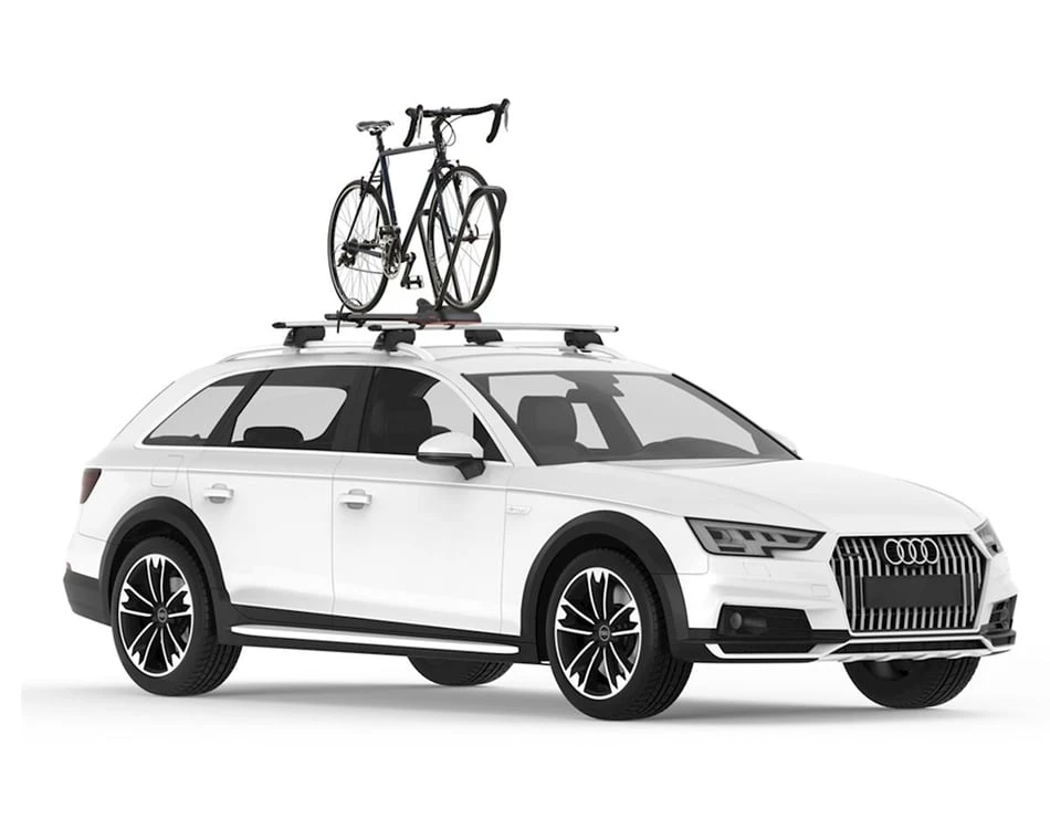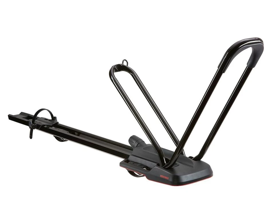 Secure, sleek, and simple to use, the HighRoad is Yakima’s newest premium upright bike mount. The adjustment-free hoop, with its TorqueRight™ tightening knob, loads a variety of bikes quickly and easily. The HighRoad secures the bike by the wheels for ultimate bike protection and the low-profile design minimizes hatch interference. Universal mounting hardware fits most roof racks.
