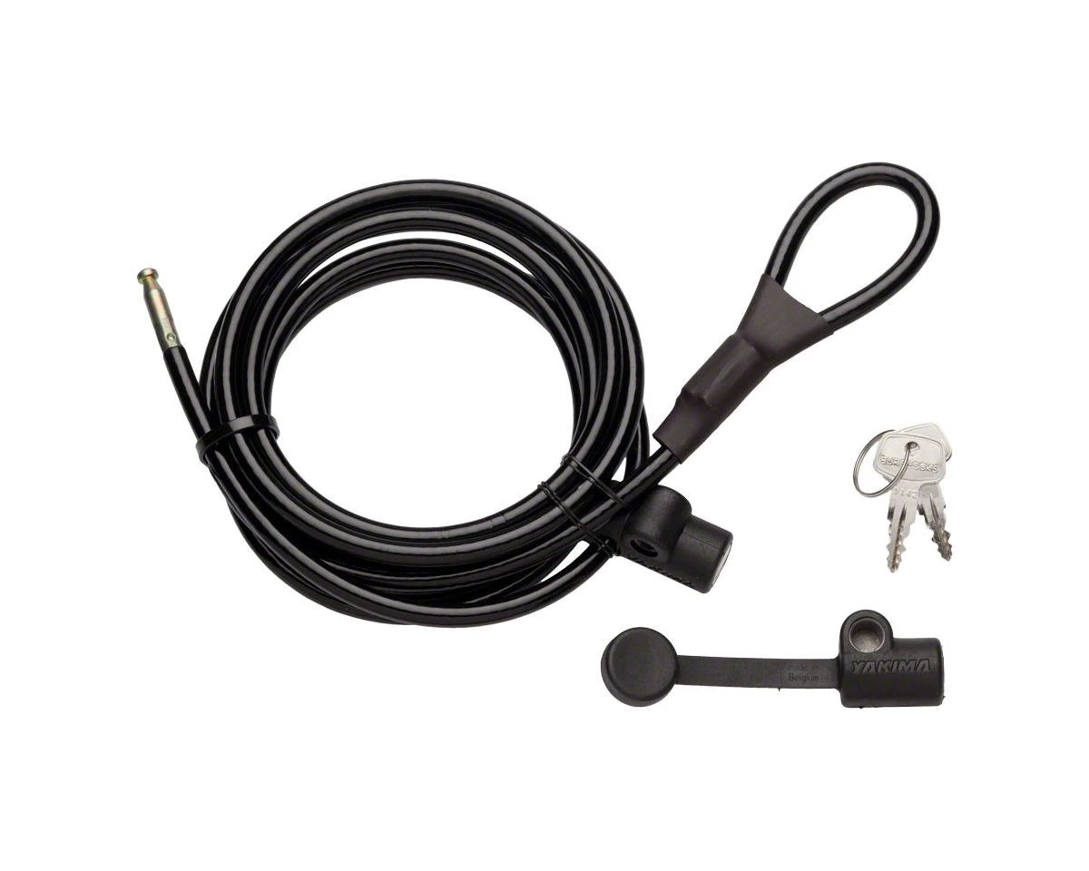 Cable lock secures bikes to a hitch rack, and hitch lock secures the rack to the car.