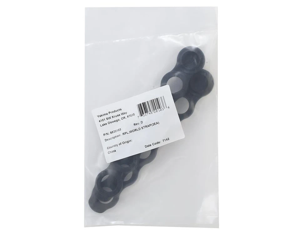 These are rubber straps used for securing bikes to Yakima hitch and strap racks manufactured before 2004.