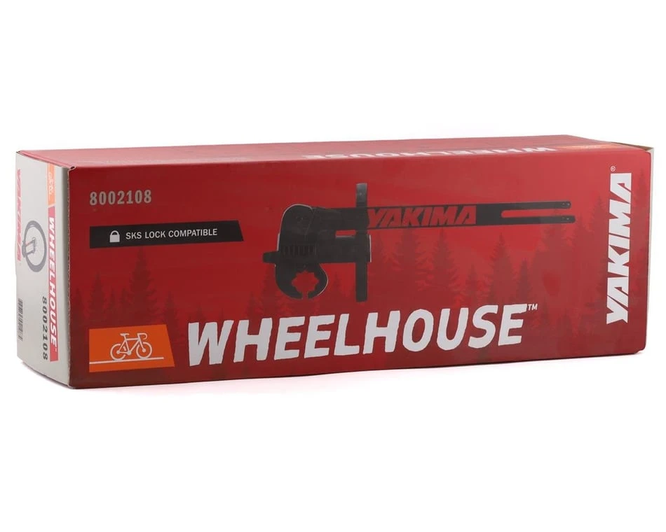 The Yakima WheelHouse wheel holder mounts to nearly any crossbar and holds one wheel. It fits QR wheels from 24-29″ out of the box and can be used with the optional thru axle adaptor for 12/15mm thru axles.