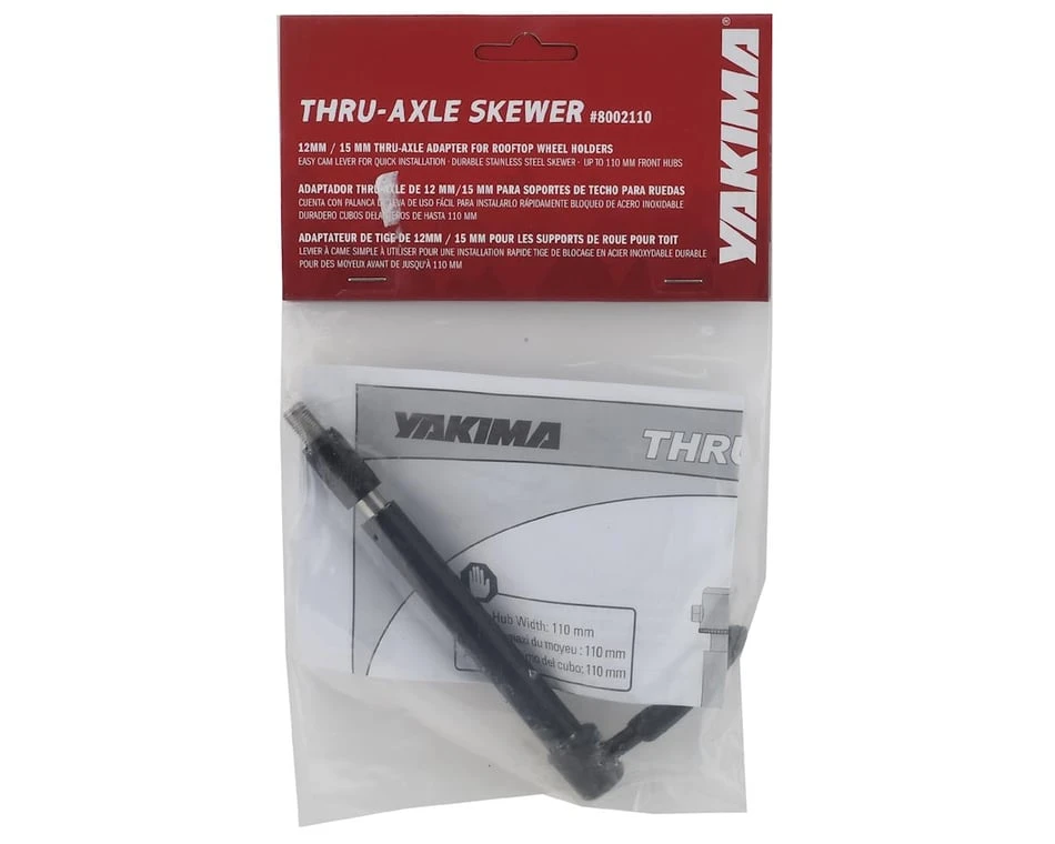 This thru axle skewer pairs with the WheelHouse wheel holder and allows users to mount wheels that have either 12mm or 15mm thru axles.