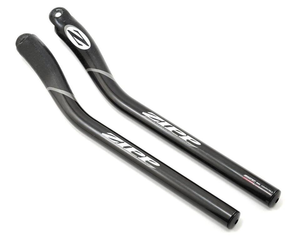 This is a pair of Zipp Vuka Carbon Aerobar Extensions. Zipp’s carbon Vuka Extensions give you all the options needed to optimize your aero position and go for the win or your personal best. All carbon Vuka Extensions come with an industry-standard 22.2mm diameter and are compatible with the Vuka Alumina Clip but not the VukaClip or VukaAero. All extension styles have a length of 360mm and have sleek internal cable routing. The carbon Race, Straight and Ski-Tip bends are compatible with all shifting systems, while the Race Vuka Shift is only compatible with SRAM 900 TT, 500 TT, R2C Aero Shifter and Zipp R2C shifters.